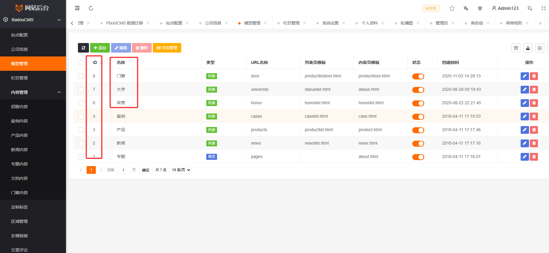 PbootCMS的自定义模型怎么同步到BadouCMS的内容管理?